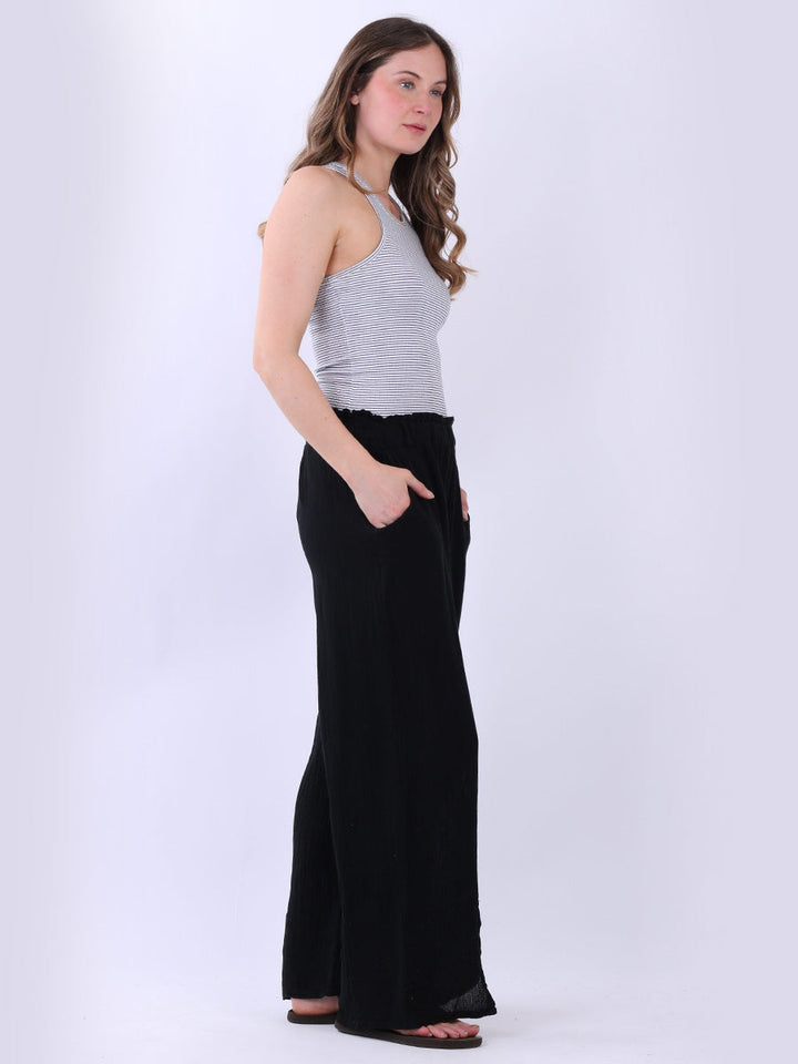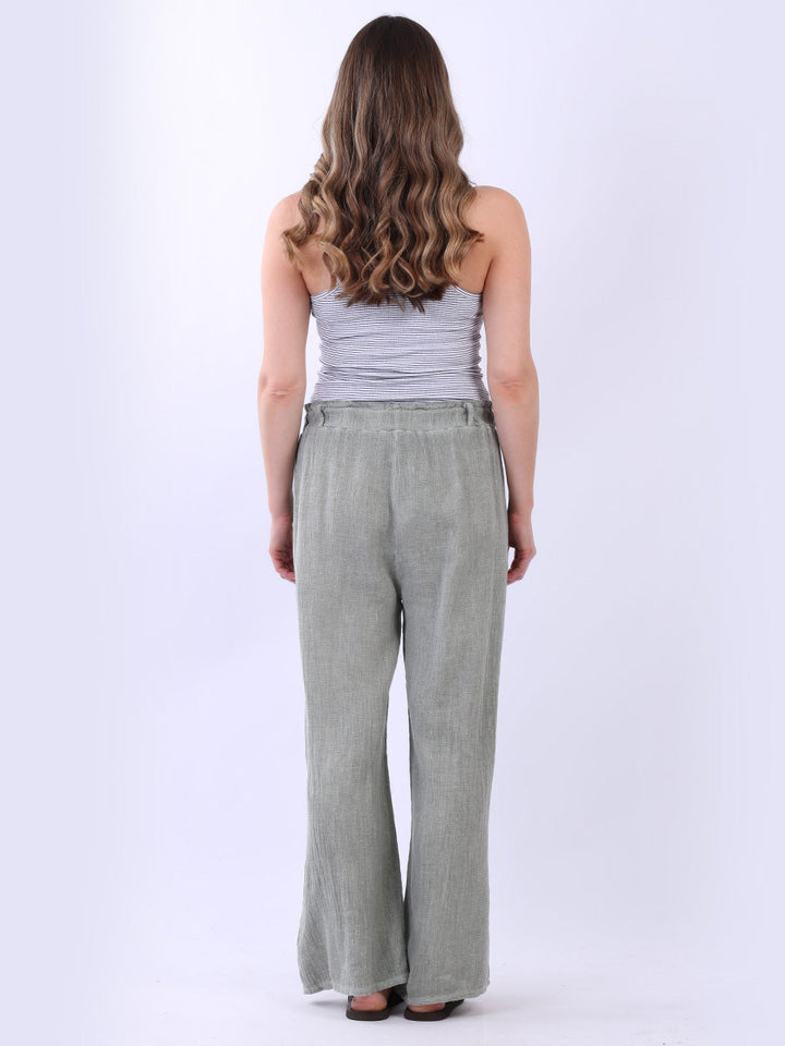 PurpleWholesale has designed these Vintage-washed linen trousers for comfort-led styling. Featuring wide legs, an elasticated waistband, and buttoned hems, they suit unhurried, everyday dressing collections and plus-size edits.