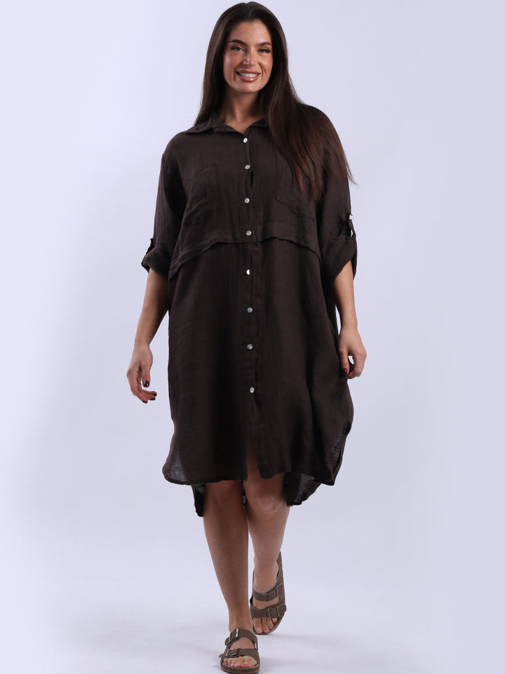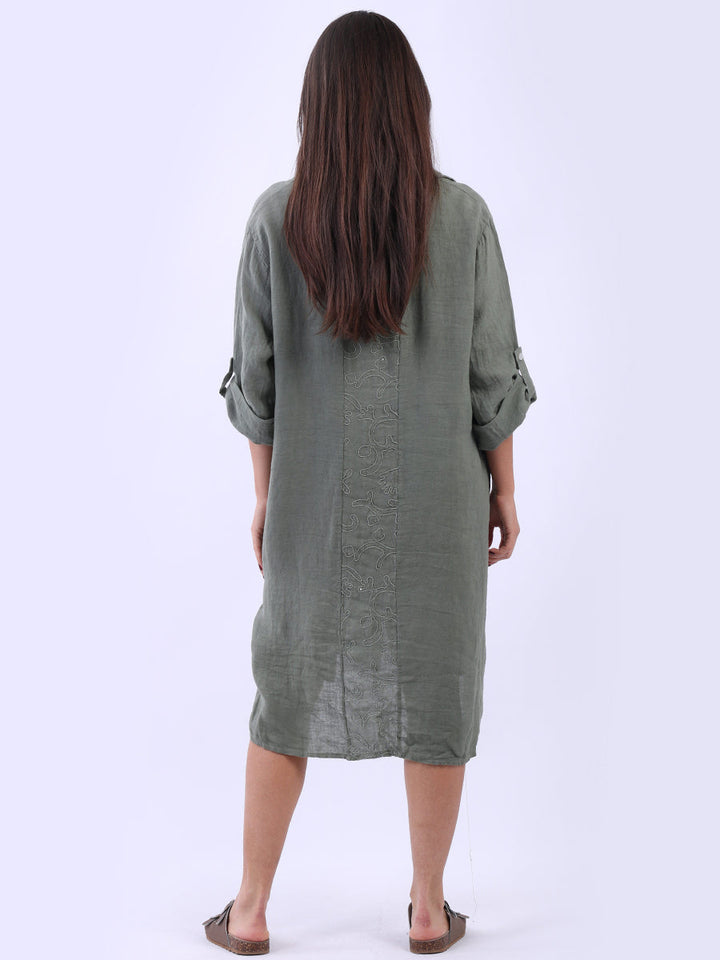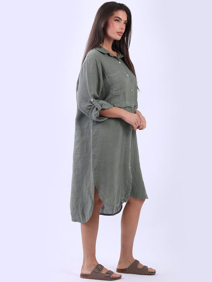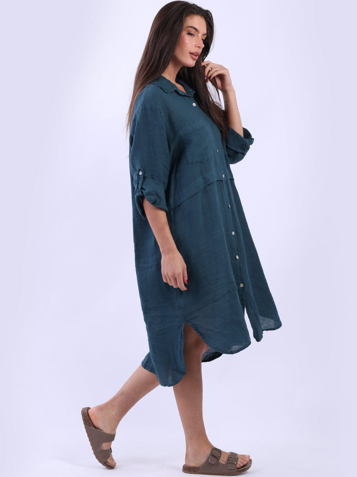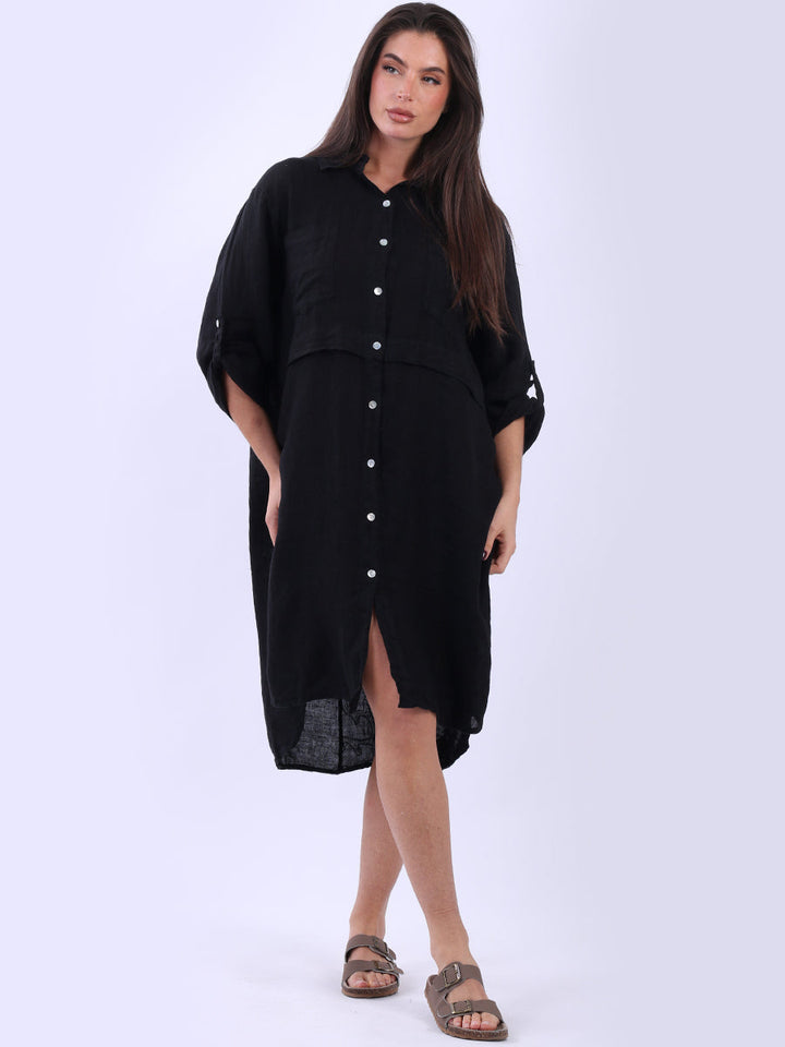 Ladies will adore the feminine appeal of this flowy linen dress from Online Clothing store USA. Designed with comfort and elegance in mind, it stands out with its lagenlook fit and refined details. Paired with knee-high boots and a crossbody bag, it flows gracefully with each step, perfect for autumn outings.