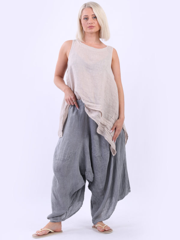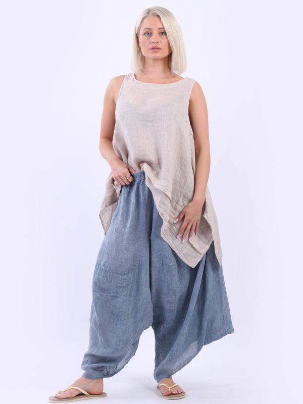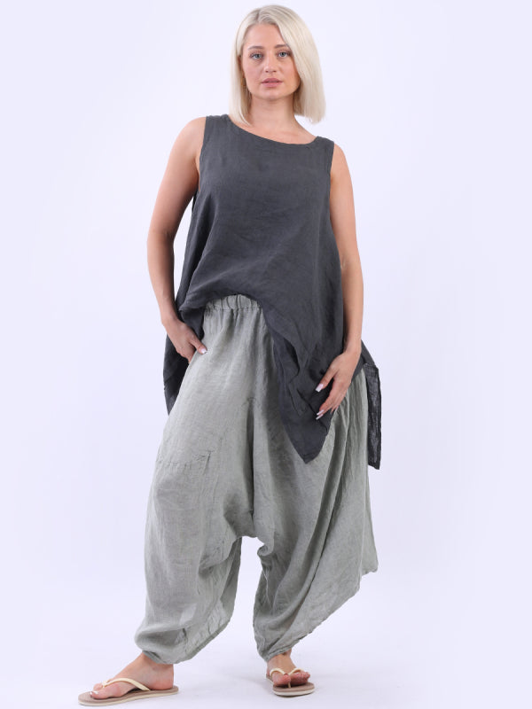 Made in Italy with exquisite tailoring that is iconic and chic these light weight trousers are straight from the fantasy book. Naturally breathable and cozy the harem trousers has elastic waist that is easy to pull on, wide leg finish and vintage wash style. Mix and match with tie and dye top from Women Clothing Store.