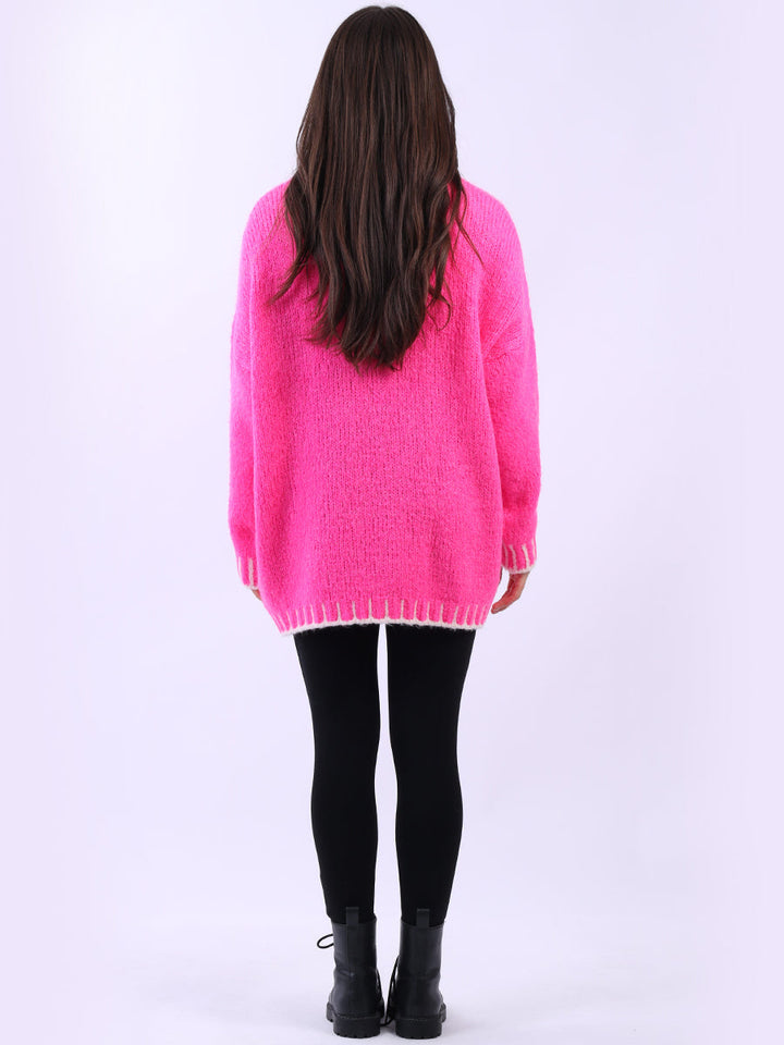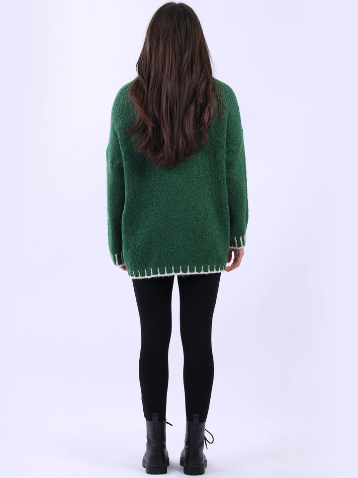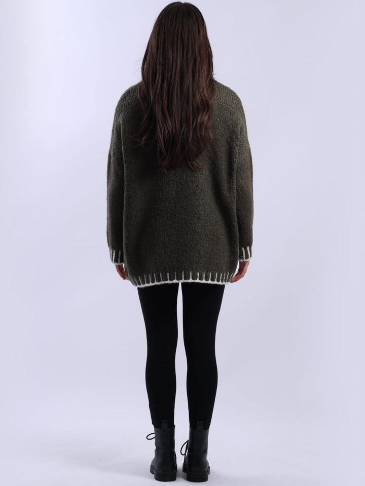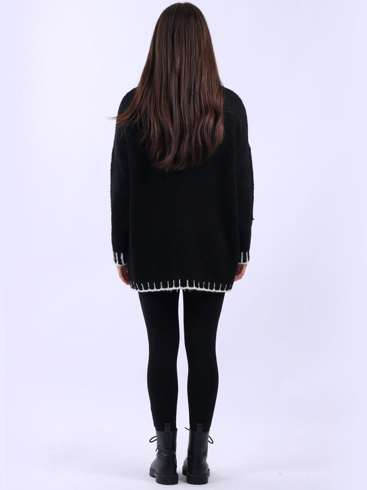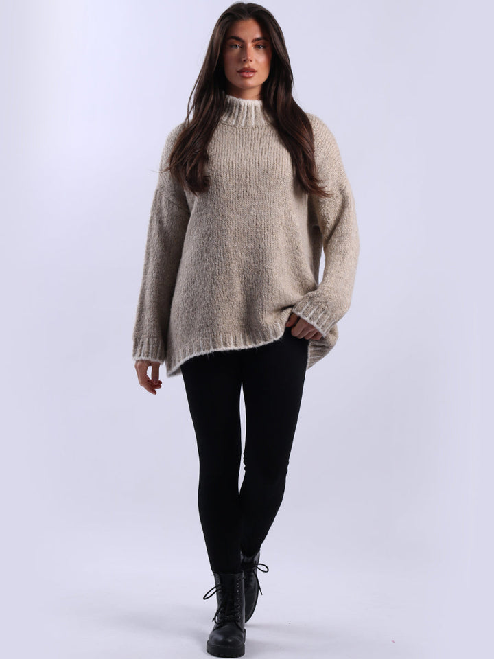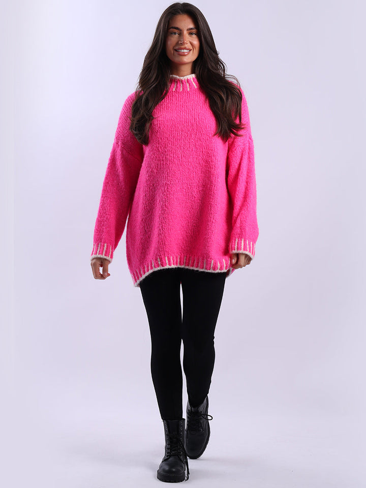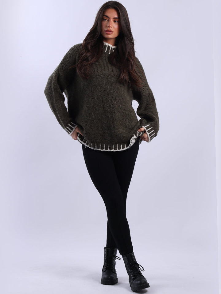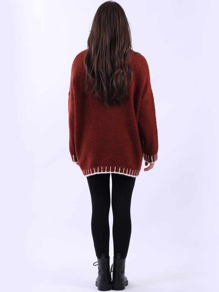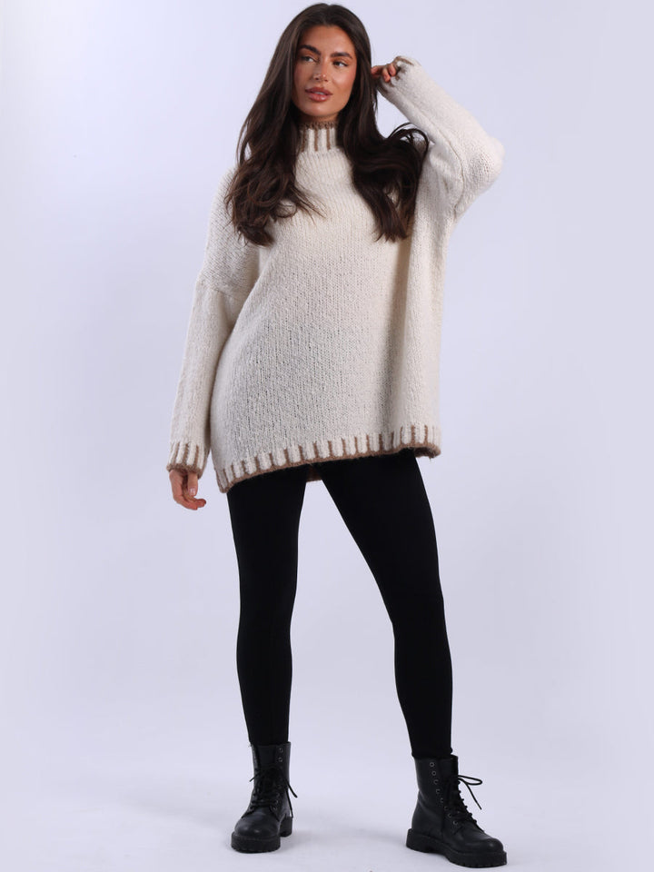 Purple Wholesale Fashion Boutique introduces its much-anticipated winter lineup with this made-in-Italy wool knitted jumper. It ensures subtle sophistication meets everyday practicality. Its whipstitch trim and funnel neck offer warmth and elegance for chilly days. It is ideal to team up with jeans and a cross-body bag.