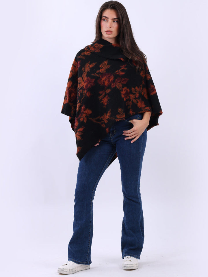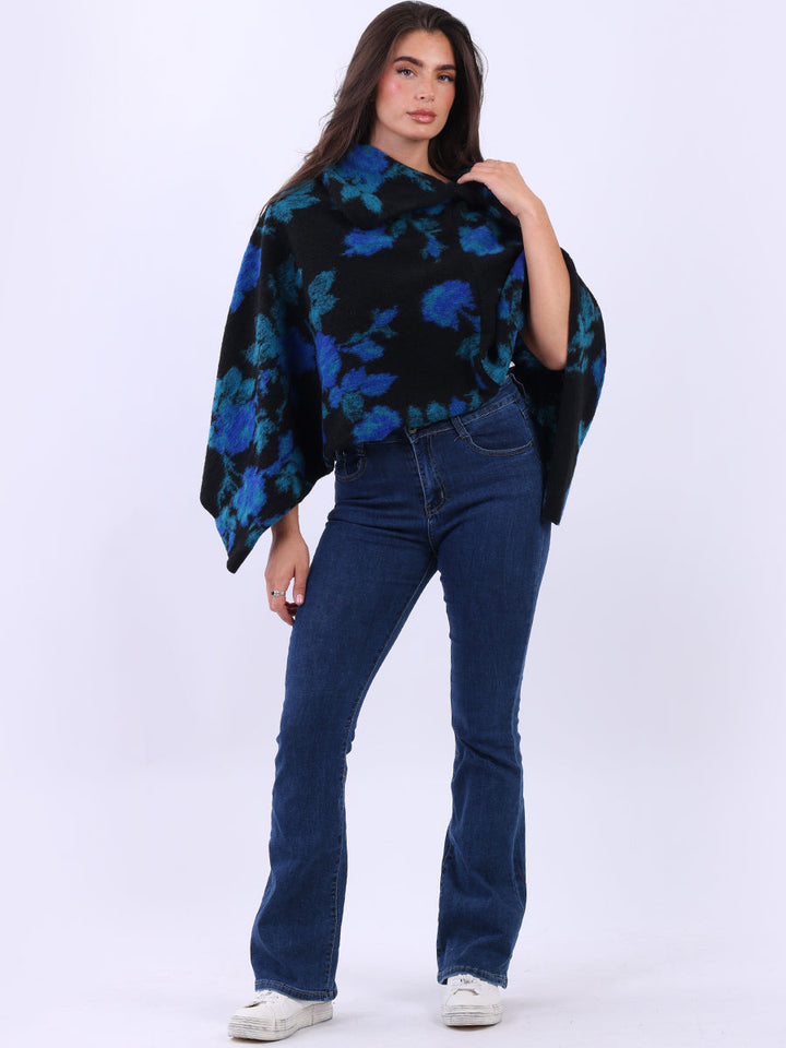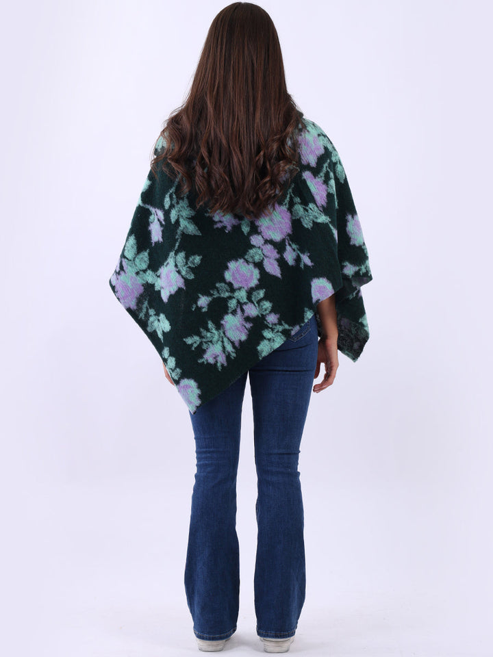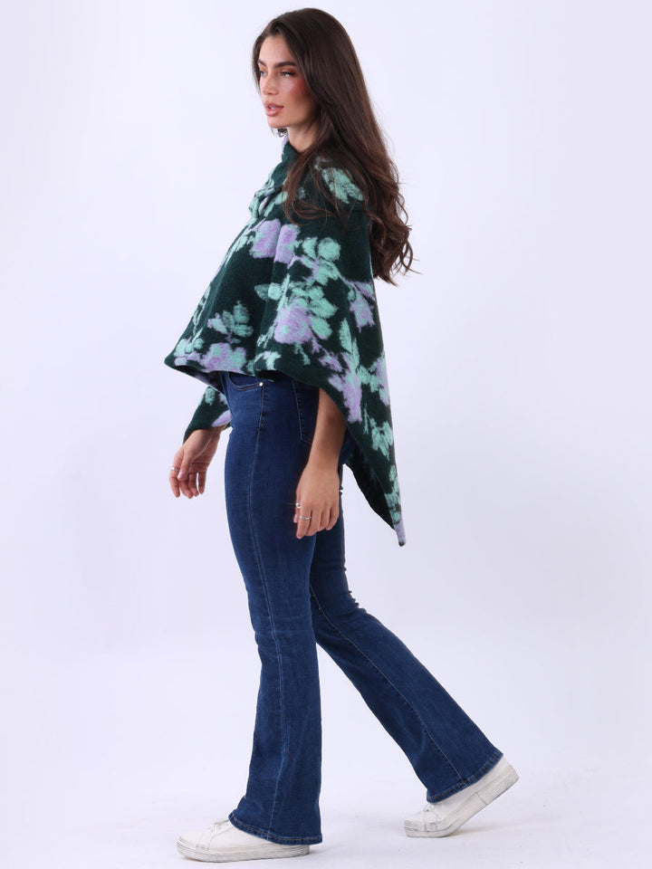 This made-in-Italy wool cozy poncho is knitted in a gorgeous floral print. It is designed in a baggy fit, with a stylish drop neck and eye-catching asymmetrical hem. Beautifully draping against the torso, this plush and soft poncho is perfect to pair with skin-tight pants for a stylish weekend look.