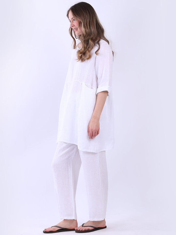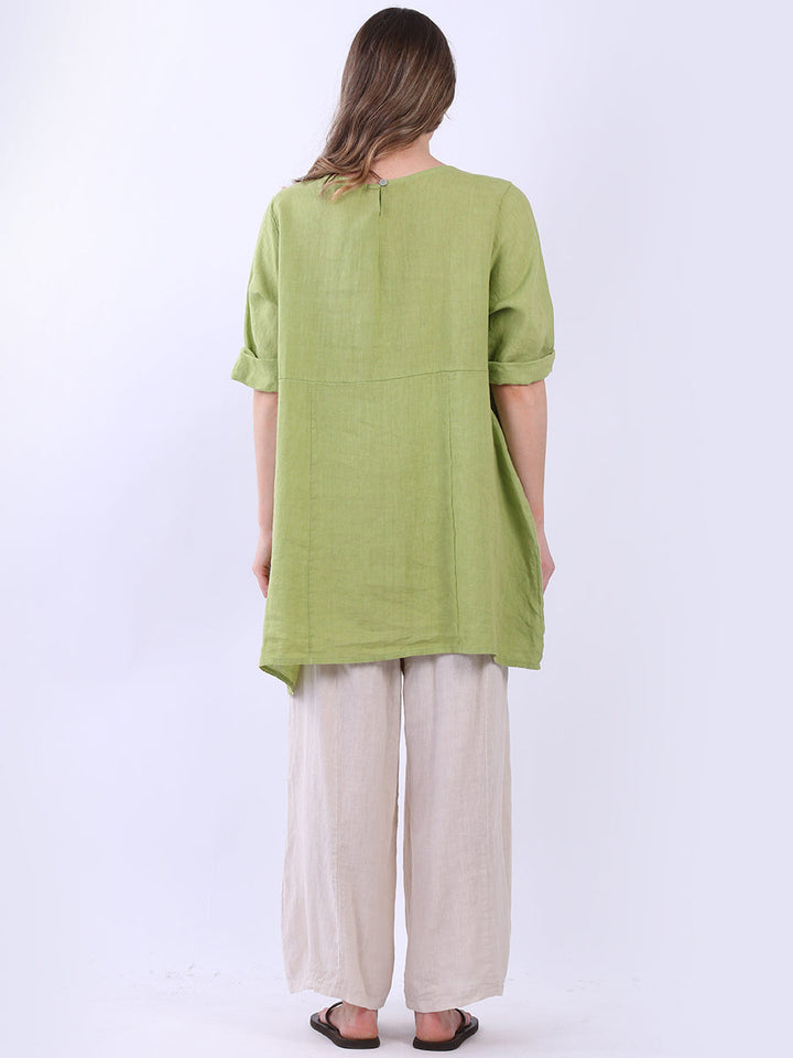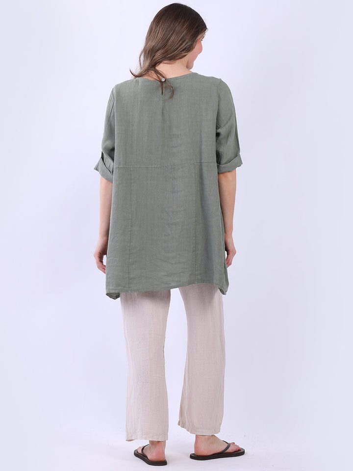 An oversized plain linen top from the latest collection at PurpleWholesale fashion boutique in America, offering breathable wear and a mood-lifting colour palette. Its relaxed cut and airy fit make it perfect for women’s casual wear ranges where ease and movement matter.