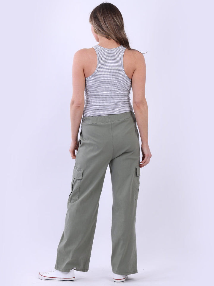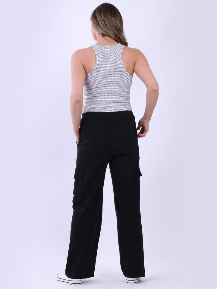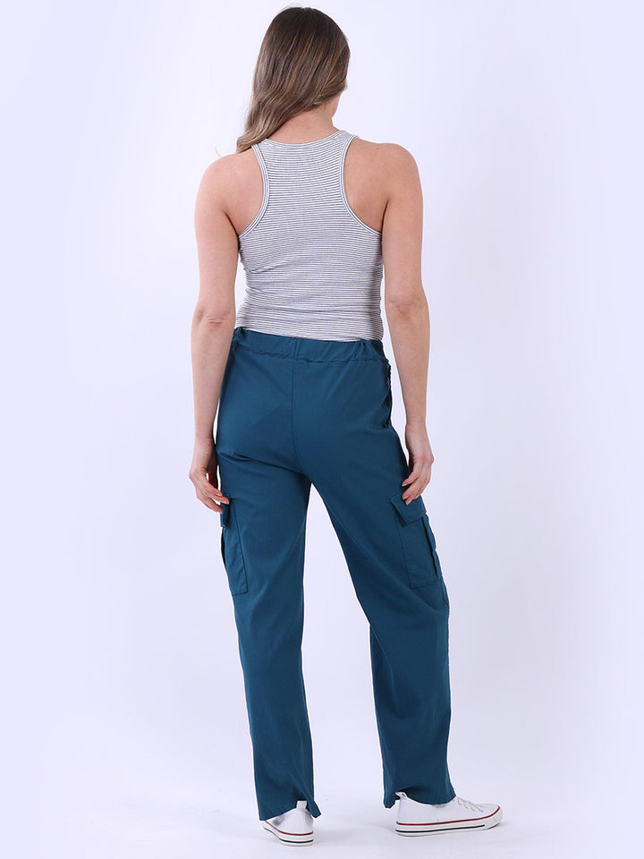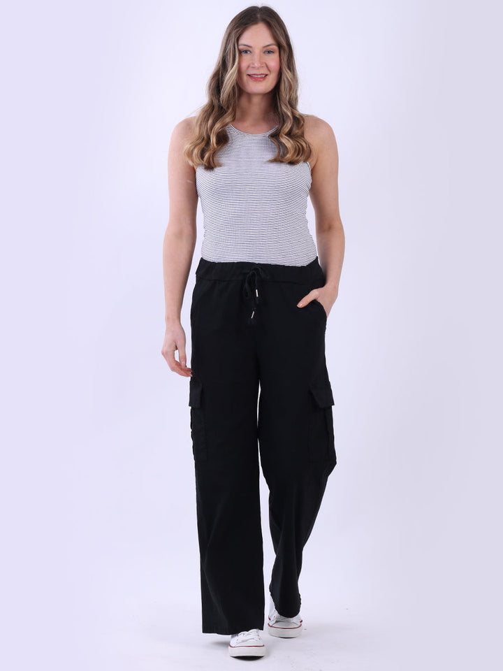 These solid Italian magic trousers from Purple Wholesale Fashion store are all about comfort and ease. They have a relaxed fit and a wide-leg silhouette that feels great to wear. The drawstring waist makes it easy to adjust, and the knee flap pockets add the relaxed vibe. This is a great option for anyone who loves an easygoing style that feels just as nice as it appears.
