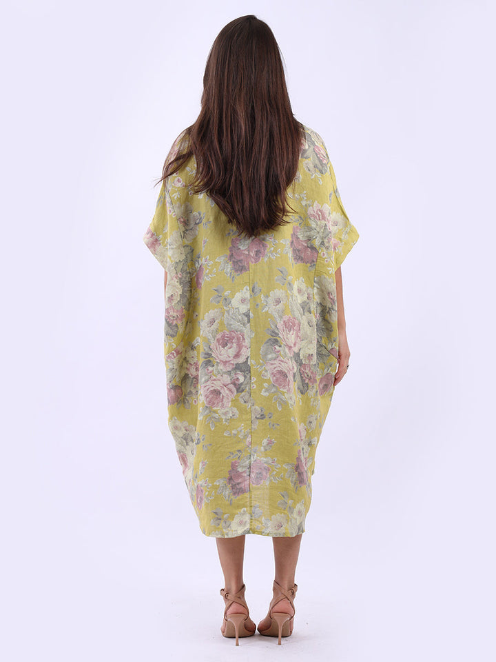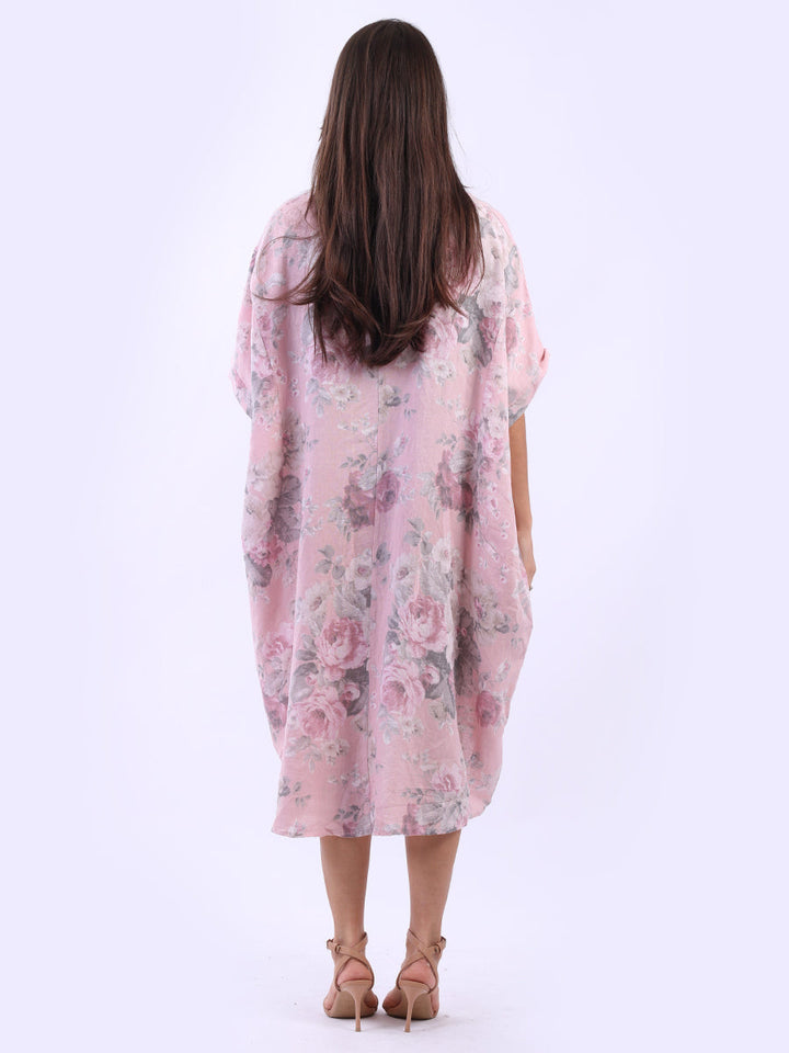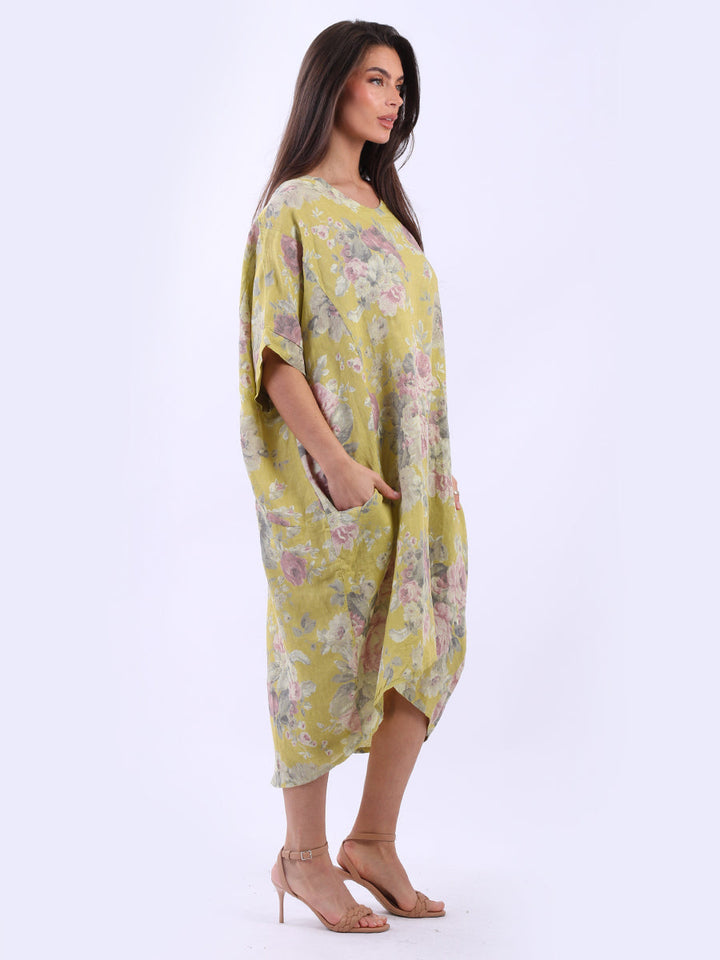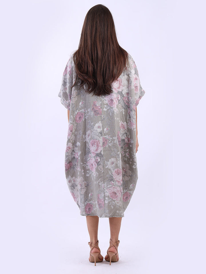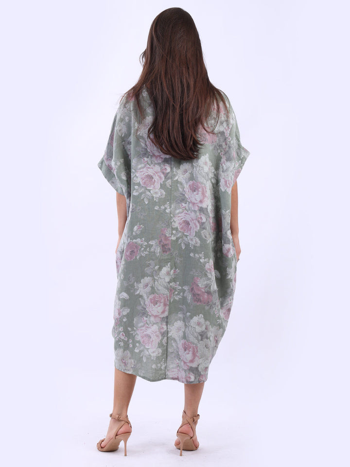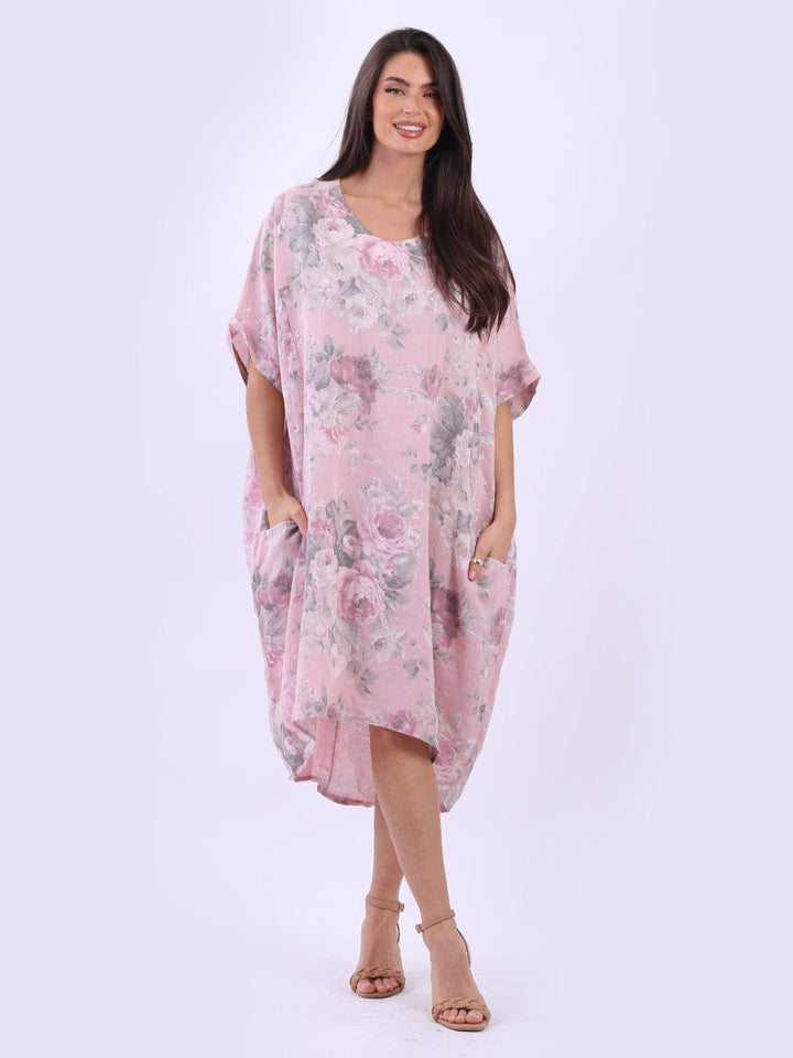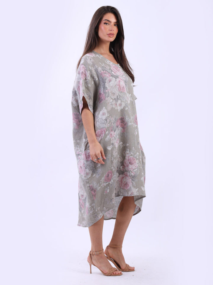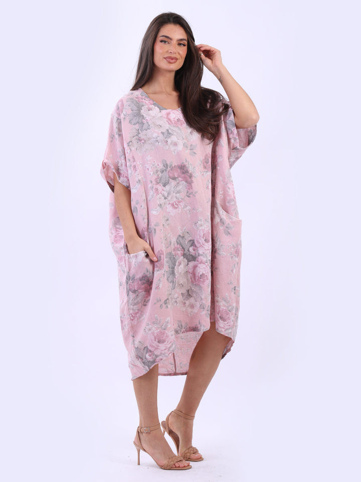 Celebrate the beauty of floral prints with this enchanting made in Italy lagenlook dress. Its oversized, relaxed fit and soft linen fabric make it a great choice for easy, laid-back days. The charming floral pattern adds a romantic touch, perfect for cozy autumn afternoons or layering up for winter. This hi-low dress is crafted for women who love gentle, free-flowing styles.