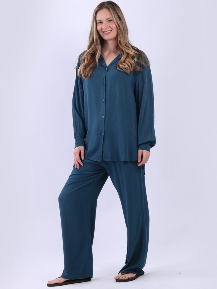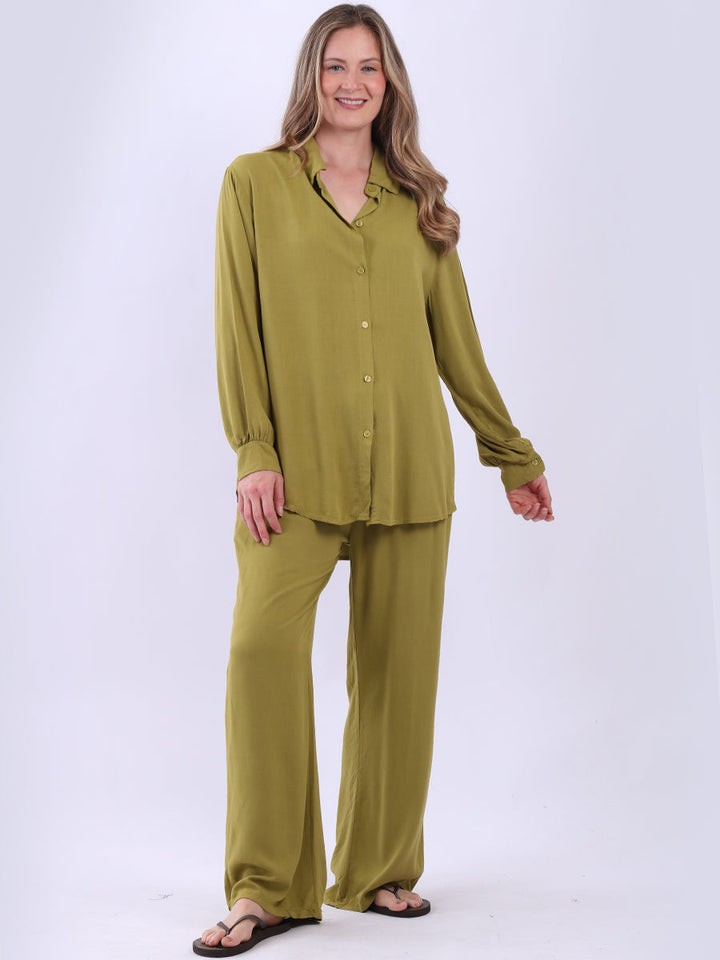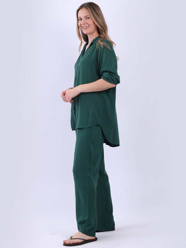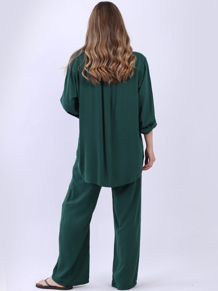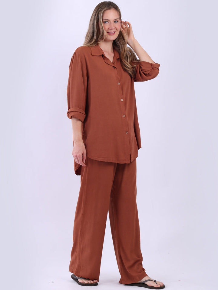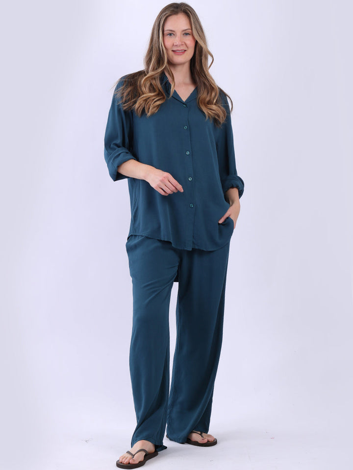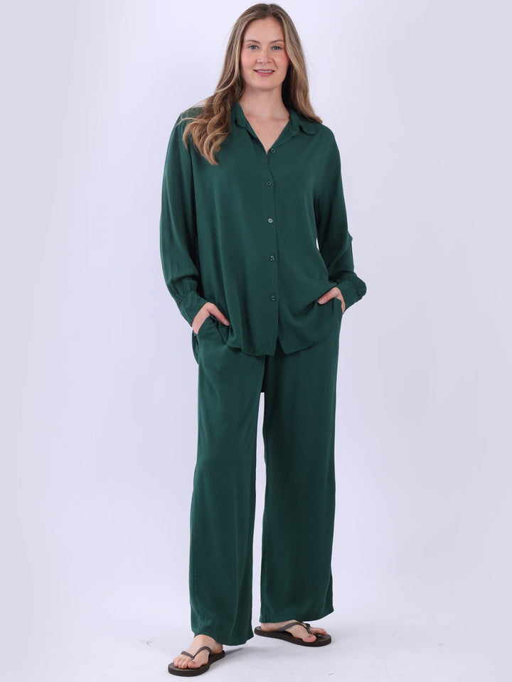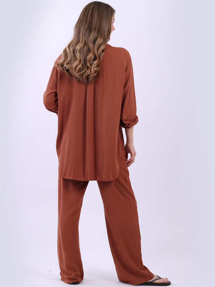 Online fashion boutique's fall/winter collection brings you this solid button-up blouse, made in Italy. It feels like the transitory beauty of fall with its lightweight, soft fabric that drapes loosely against the torso. Timelessly classy features like long cuffed sleeves, collared neck, and front button fastening add elegance and sleekness, making it versatile enough to be dressed up or down in a formal or casual setting.