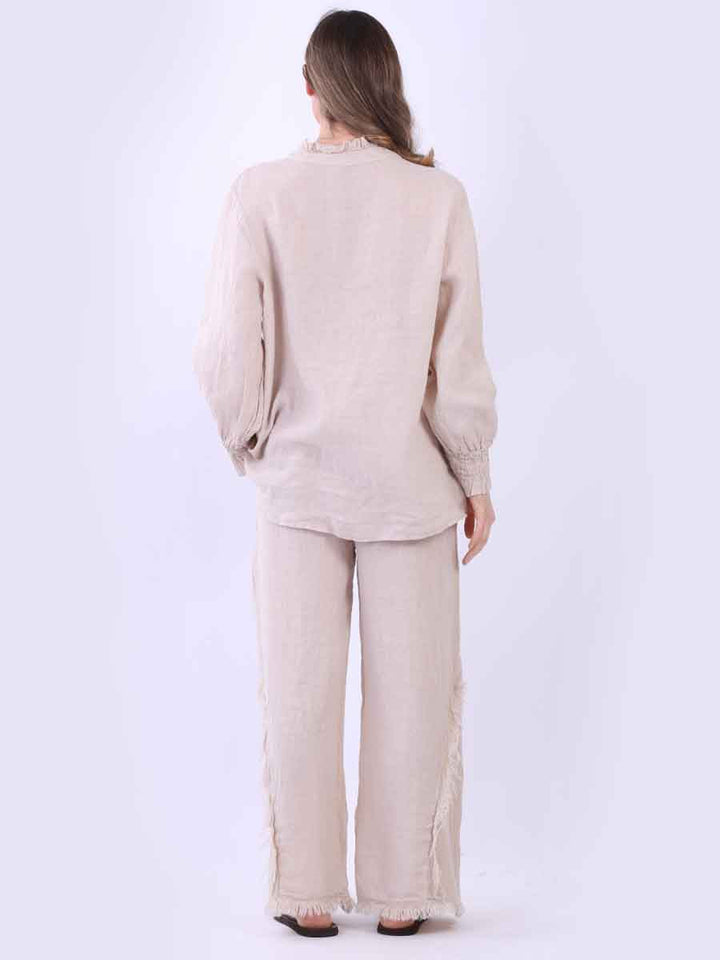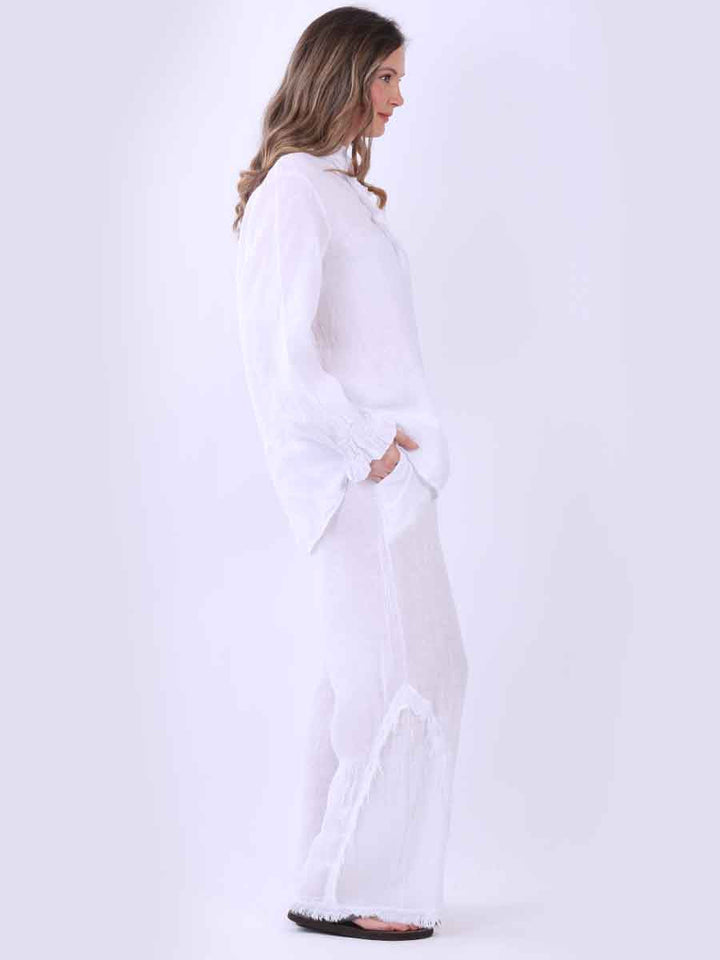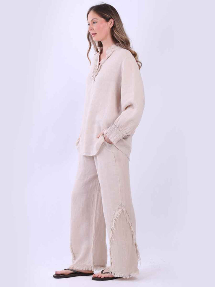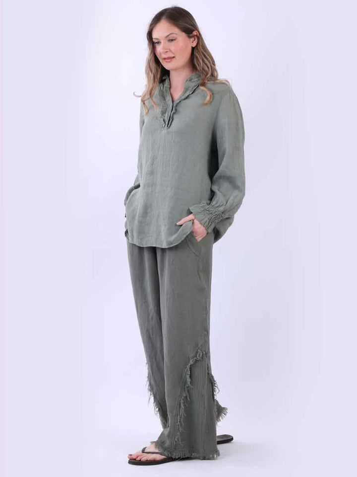 Purple Wholesale presents a serene blend of style and ease. This made-in-Italy solid lagenlook top, with soft ruffles and breathable linen, embodies relaxed sophistication. A dreamy addition to any summer collection, designed for comfort and effortless charm.