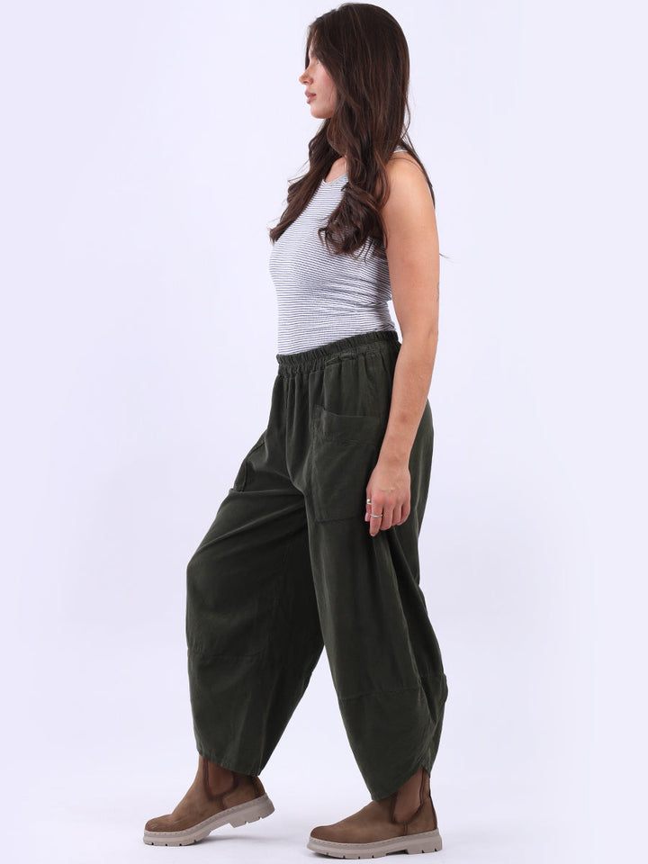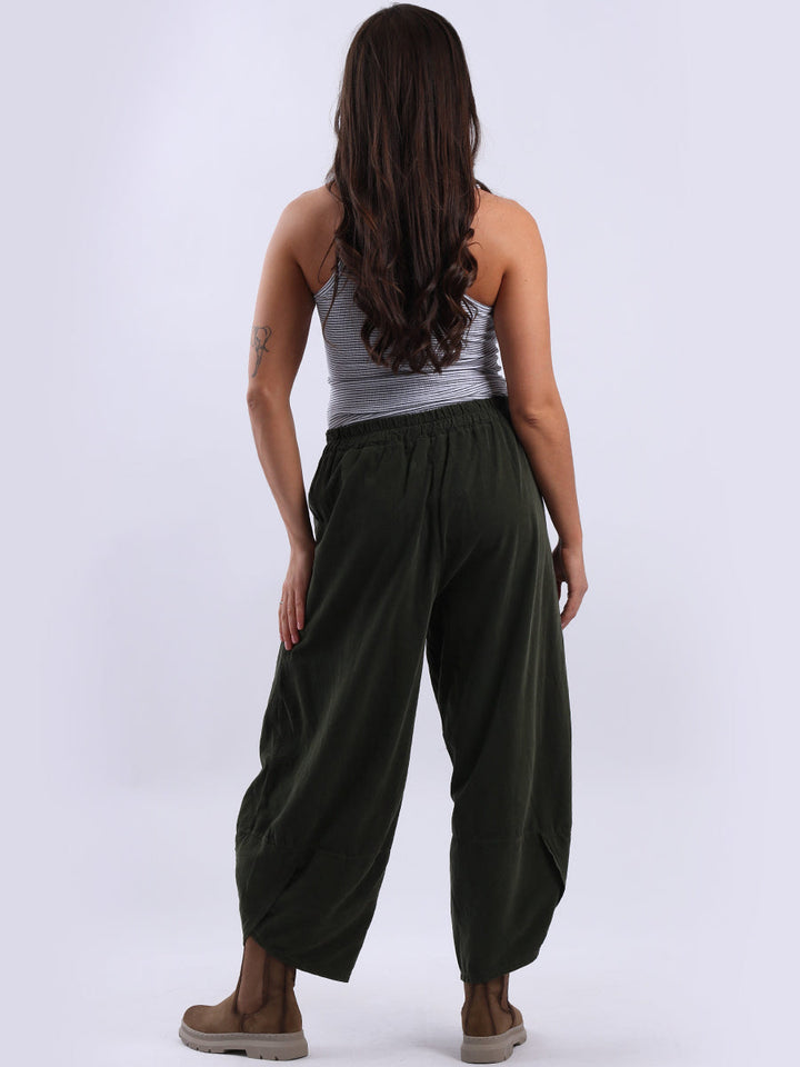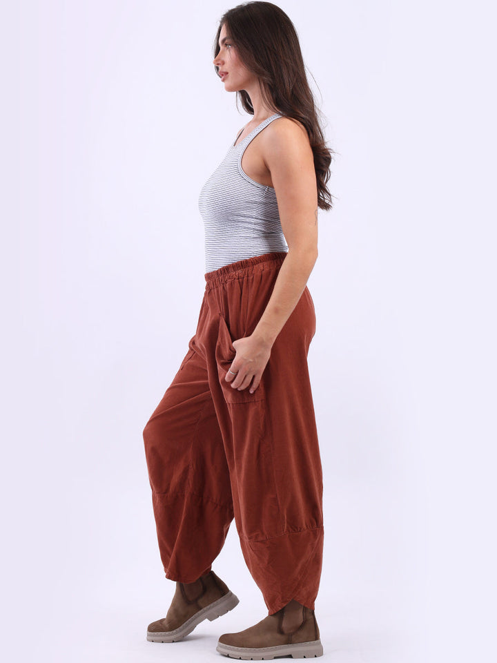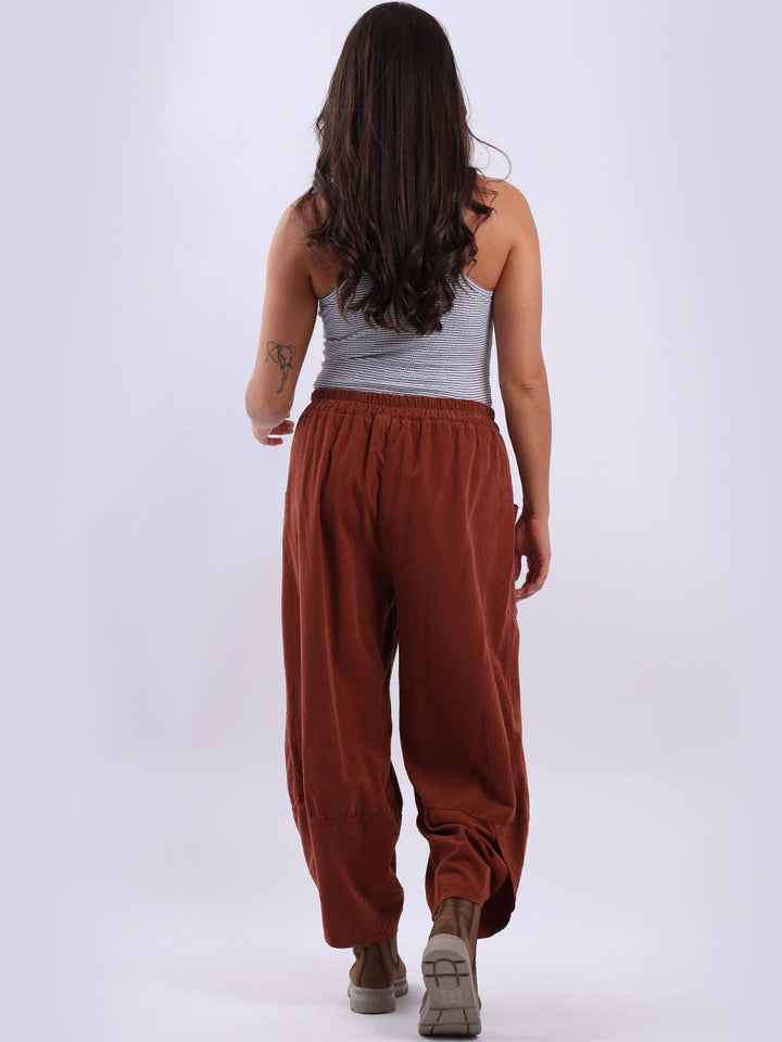 These Italian solid corduroy pants redefine casual chic. Delicately tailored for plus-size women wearers, their loose fit and tulip hem ensure maximum comfort while maintaining a stylish edge. A go-to choice for ladies when they want to feel effortlessly put together!