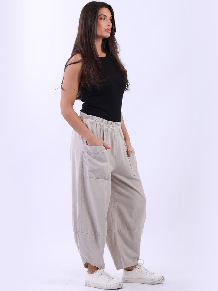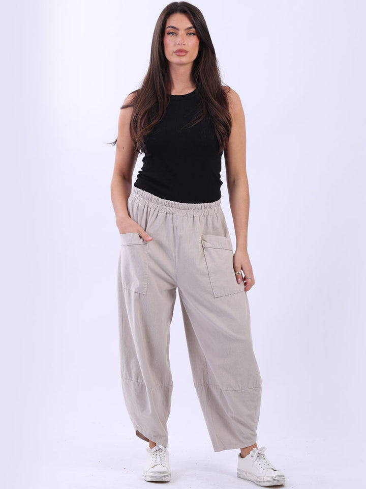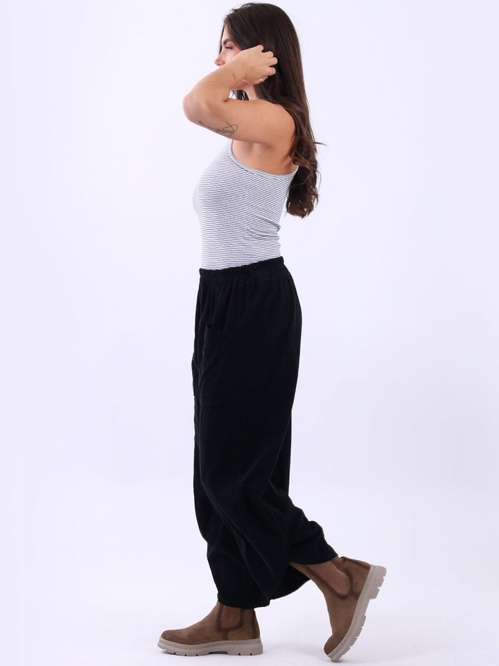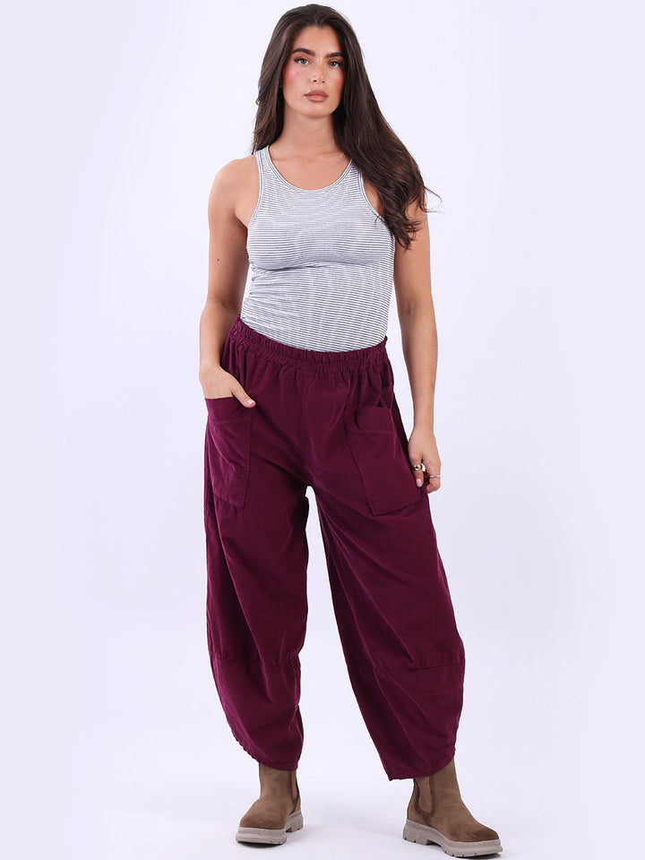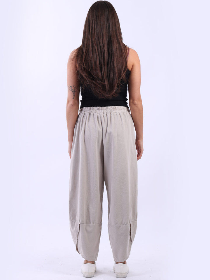 These Italian solid corduroy pants redefine casual chic. Delicately tailored for plus-size women wearers, their loose fit and tulip hem ensure maximum comfort while maintaining a stylish edge. A go-to choice for ladies when they want to feel effortlessly put together!