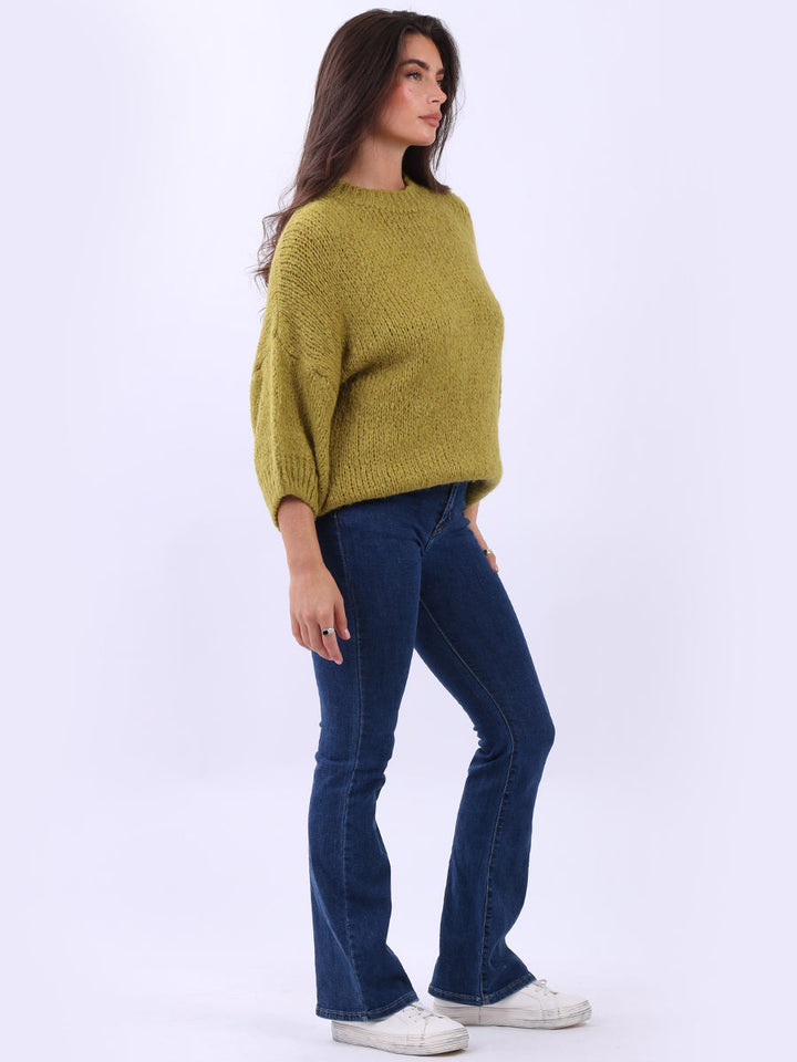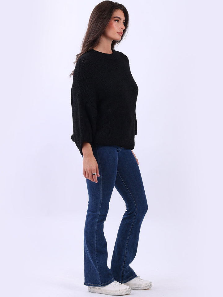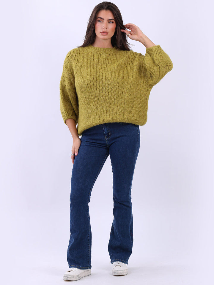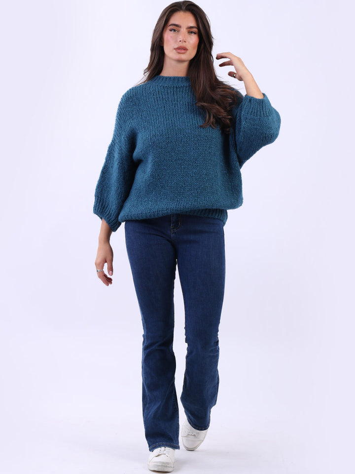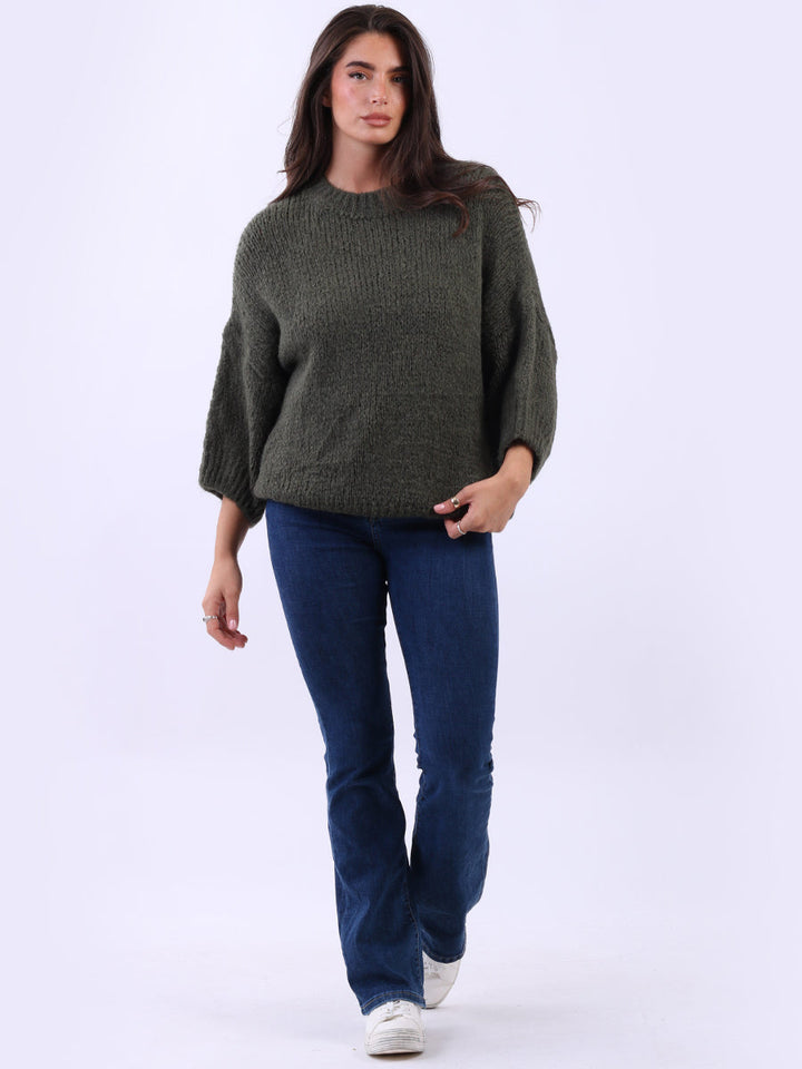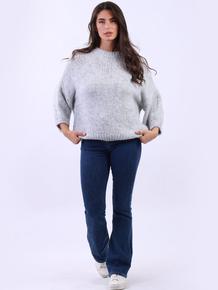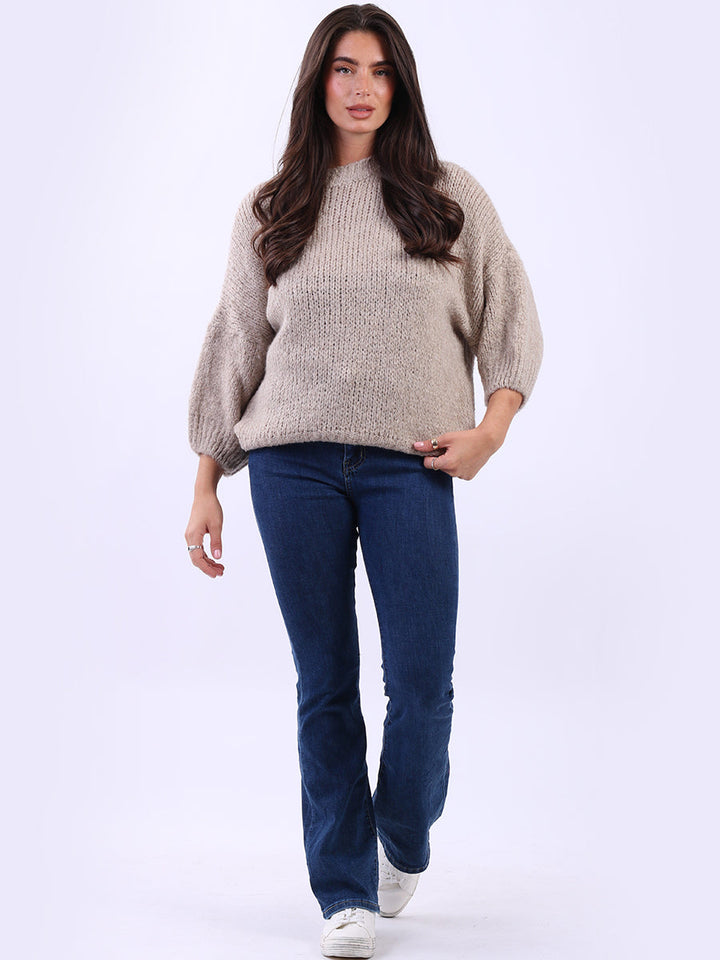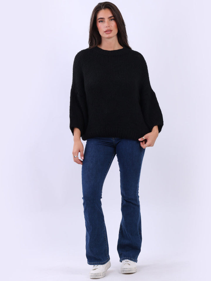 This stylish crop lagenlook jumper is knitted with soft, plush wool, perfect for chilly winter days. The balloon sleeves and loose, baggy fit offer both comfort and flair. Women would love to pair it with their favorite bottoms for a stylish look that works for any casual or formal occasion.
