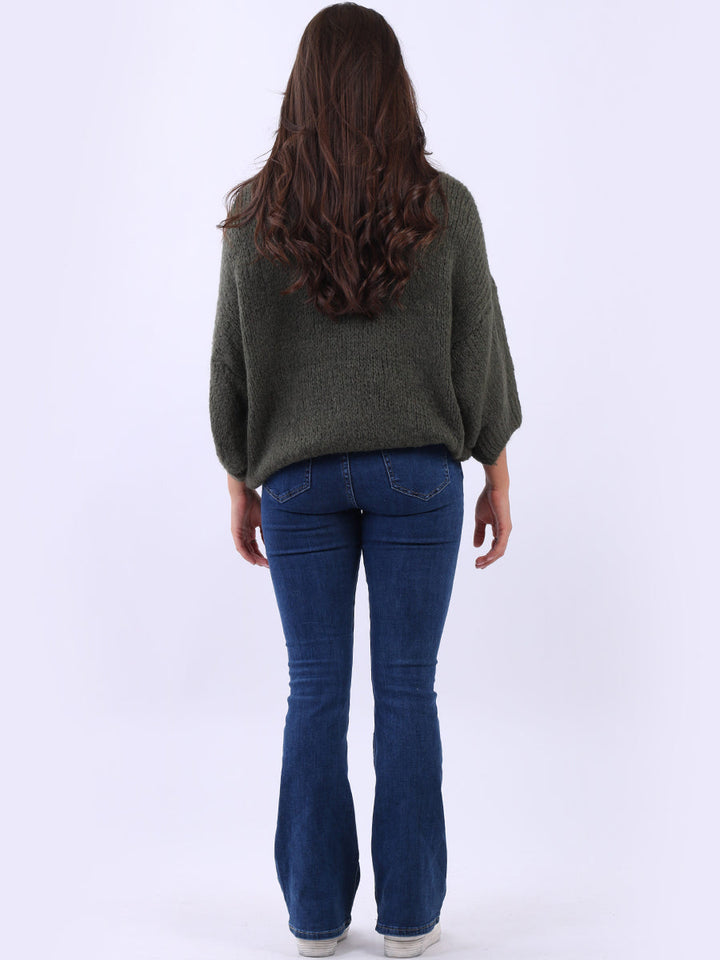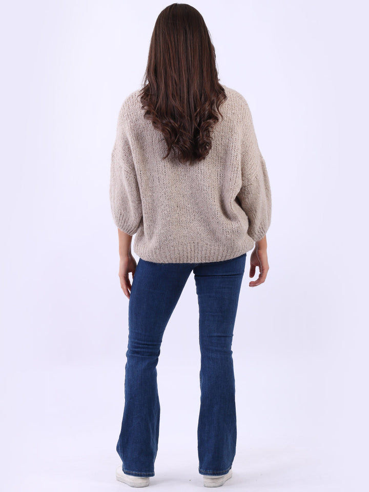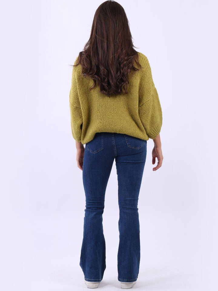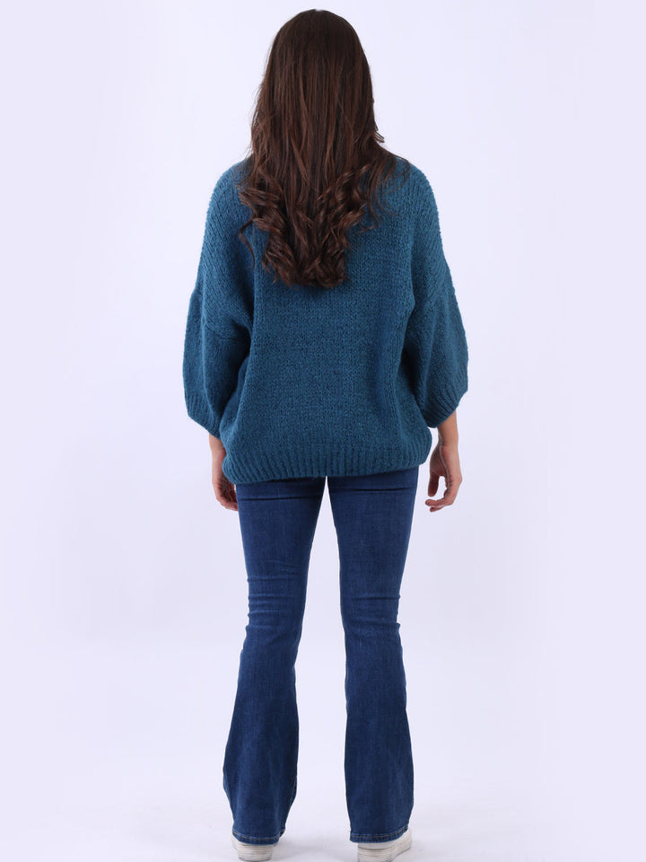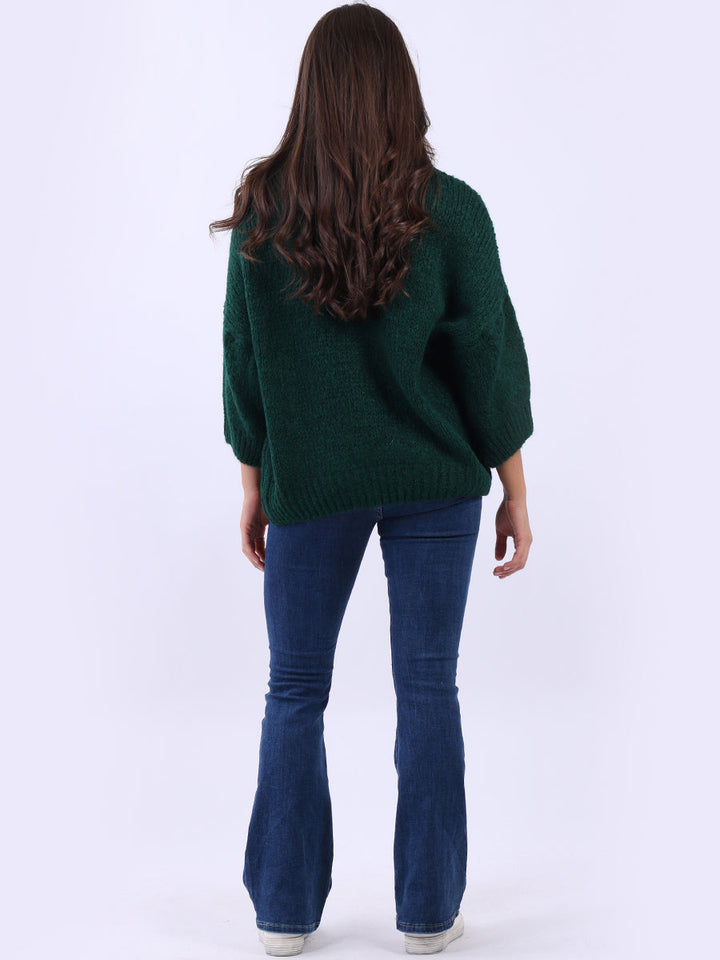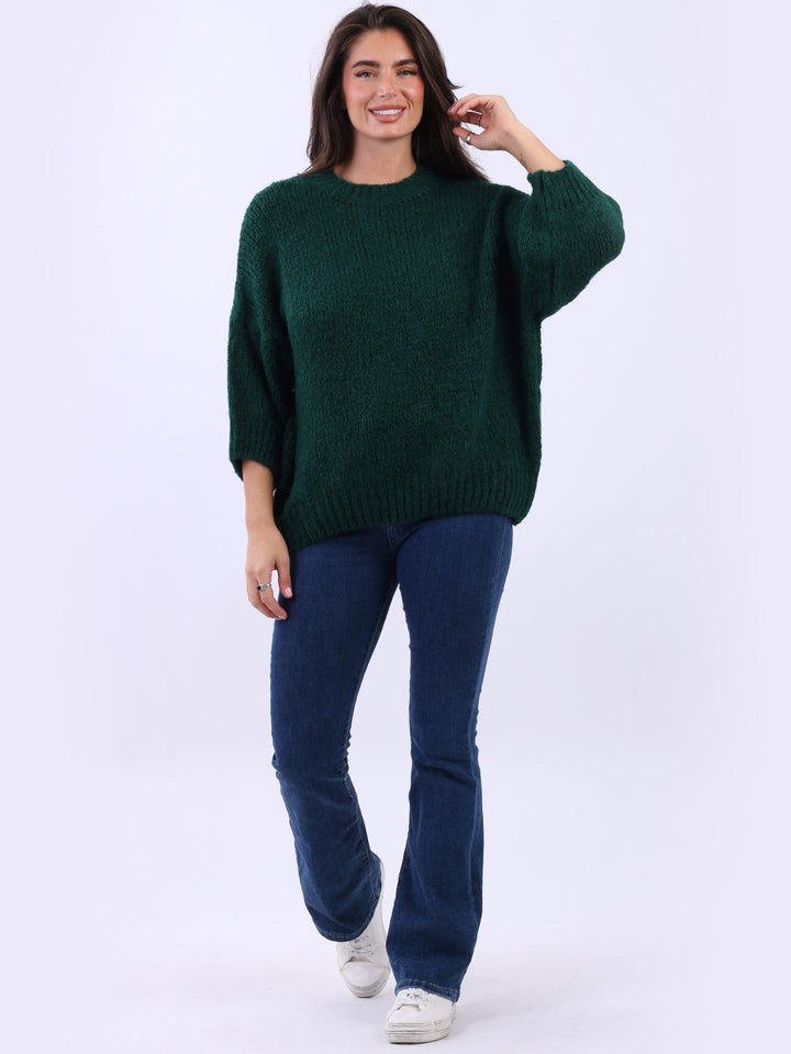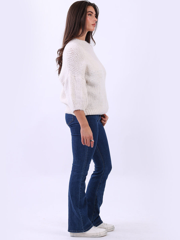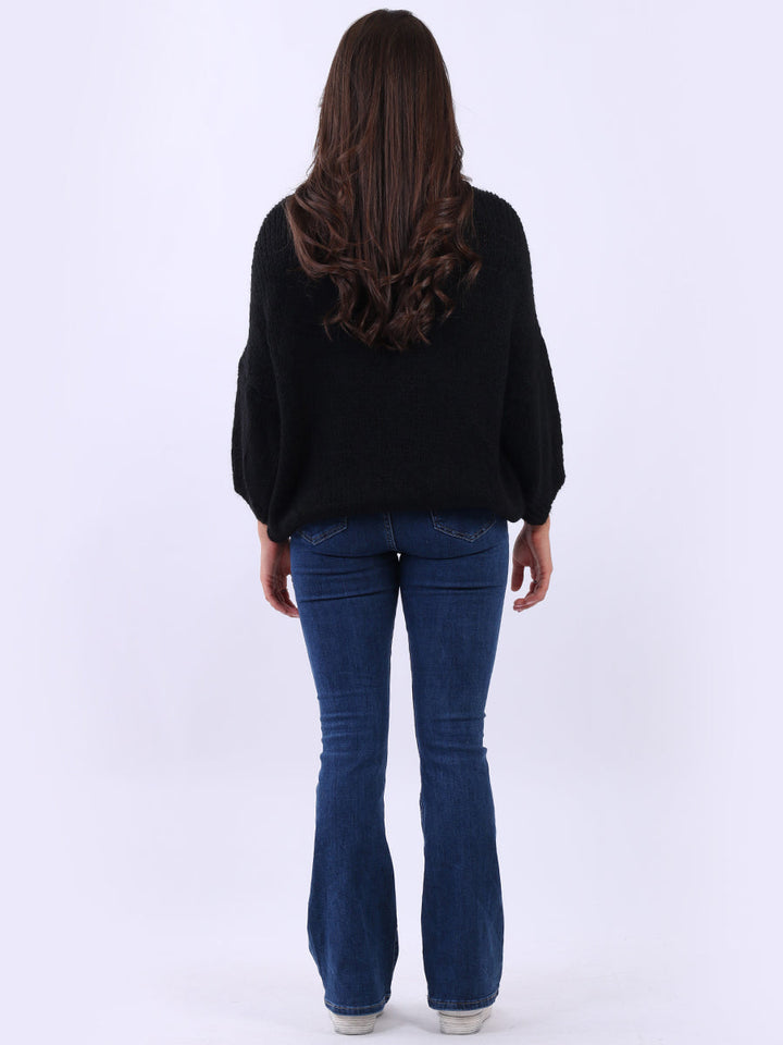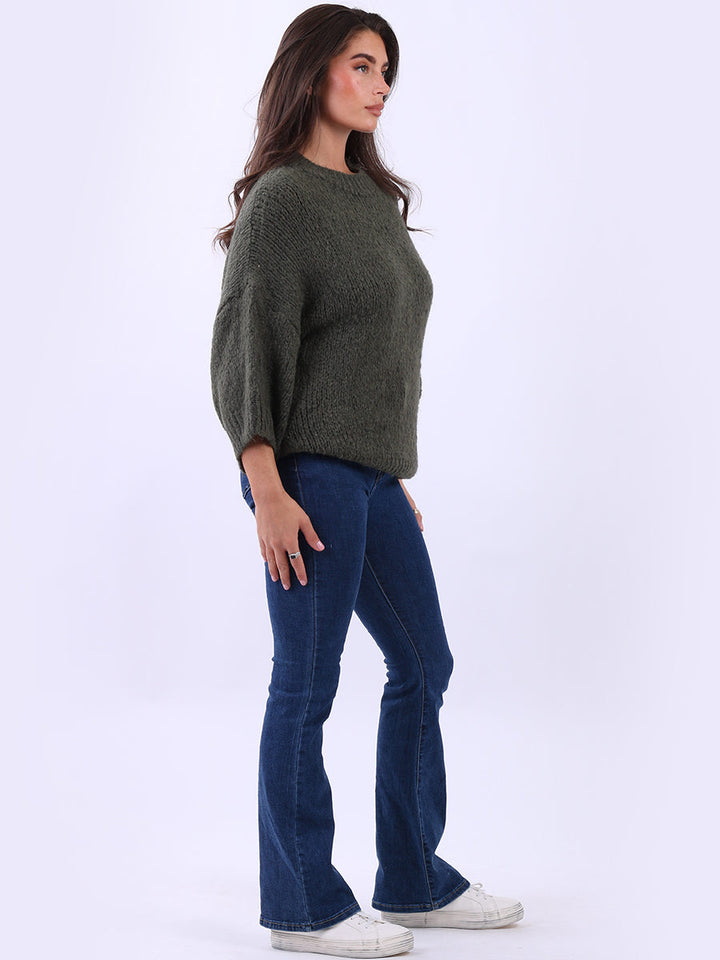 This stylish crop lagenlook jumper is knitted with soft, plush wool, perfect for chilly winter days. The balloon sleeves and loose, baggy fit offer both comfort and flair. Women would love to pair it with their favorite bottoms for a stylish look that works for any casual or formal occasion.